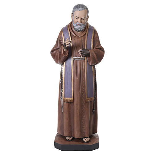 Estátua São Padre Pio fibra de vidro pintada 120 cm