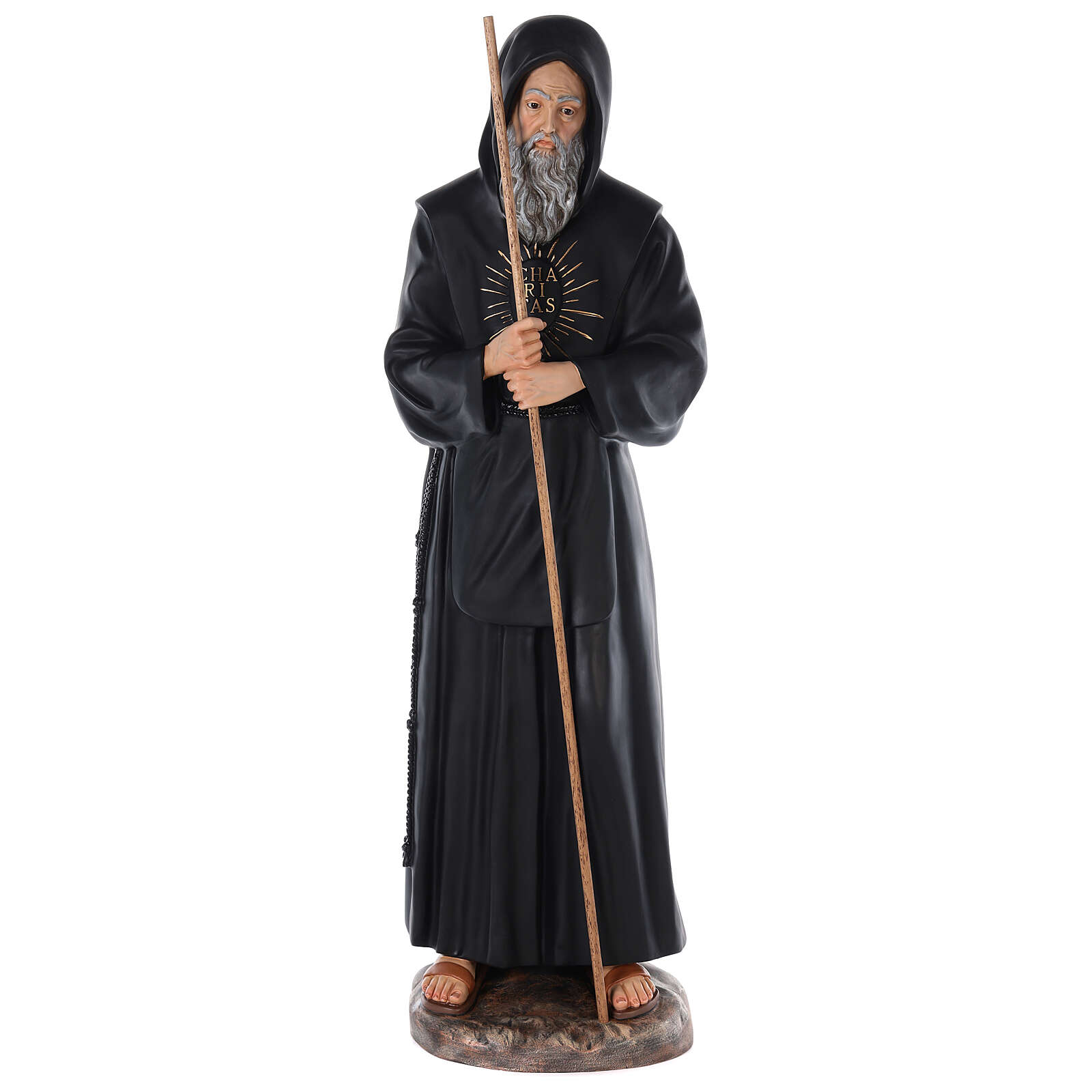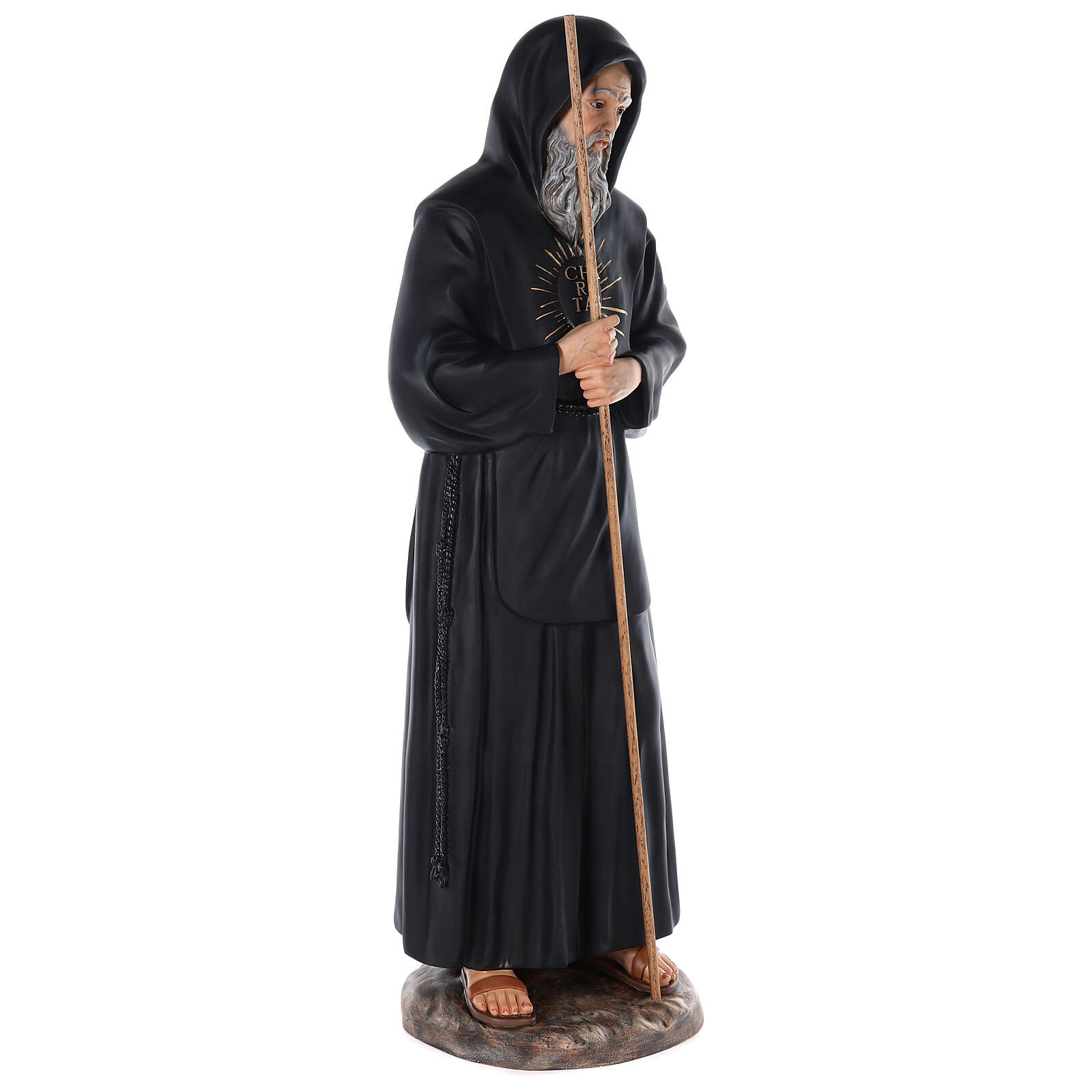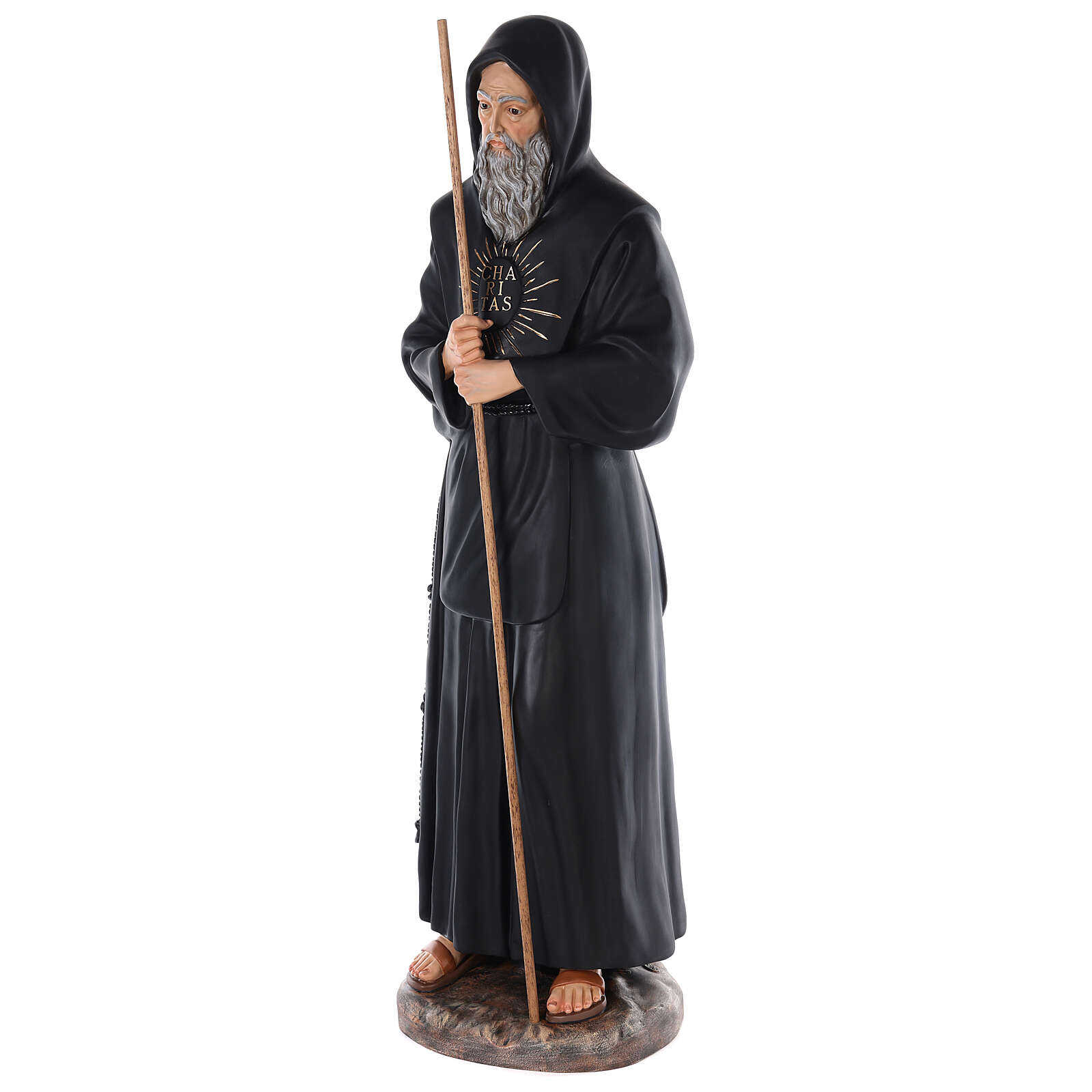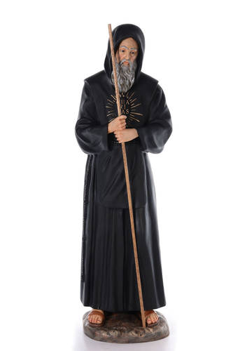 São Francisco de Paula fibra de vidro corada 115 cm olhos vidro. Imagem de São Francisco de Paula em fibra de vidro corada para ambientes interiores, com olhos em vidro.