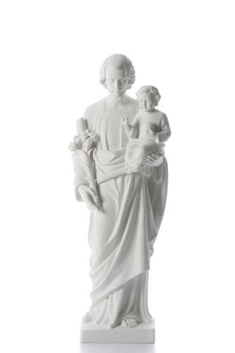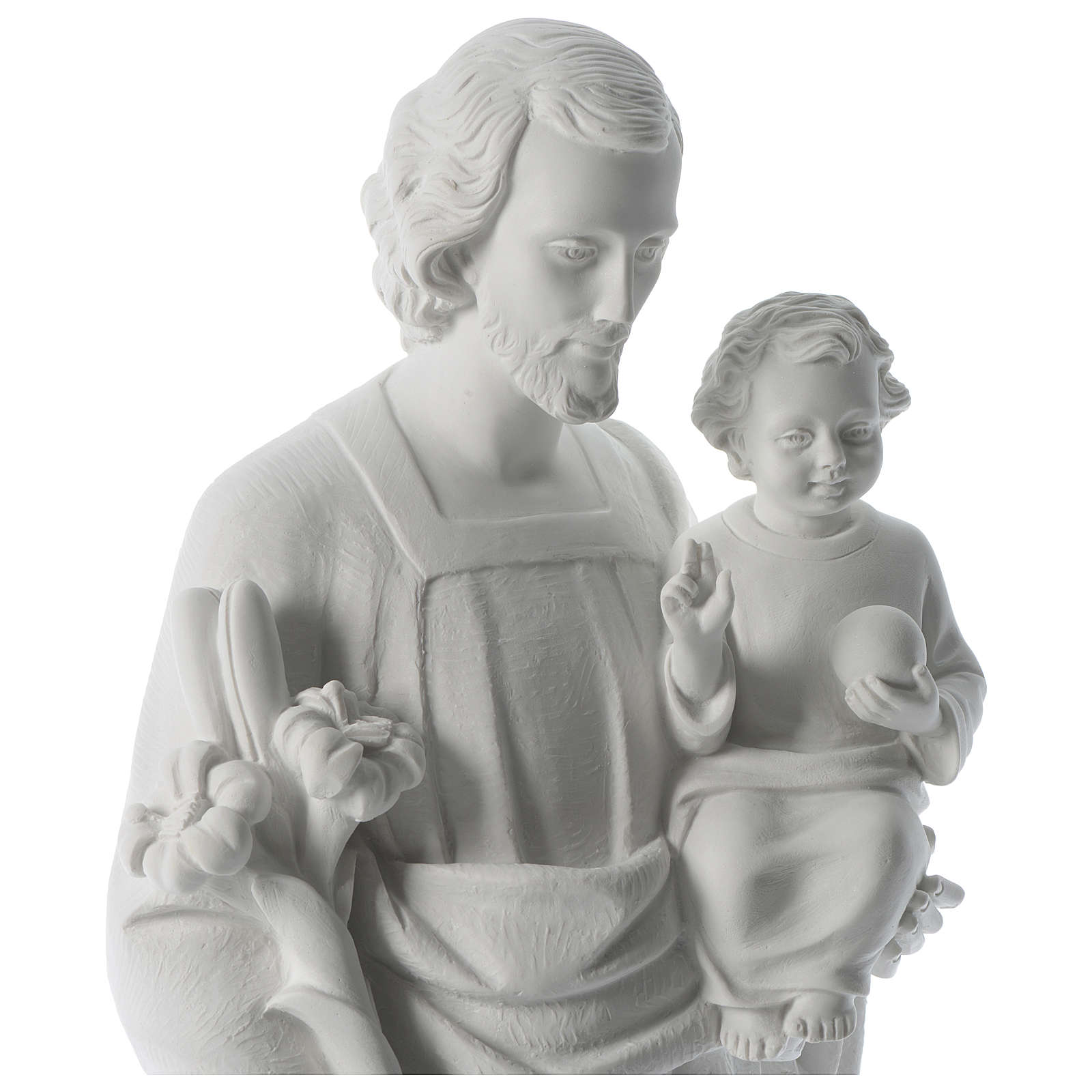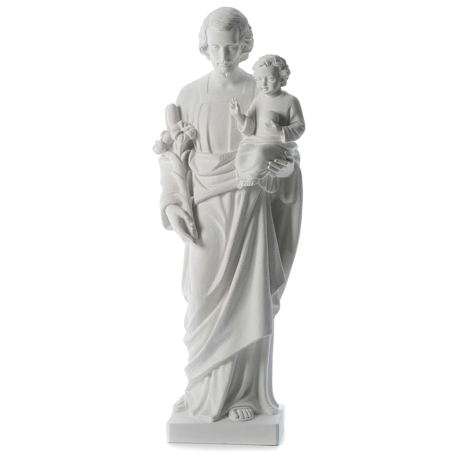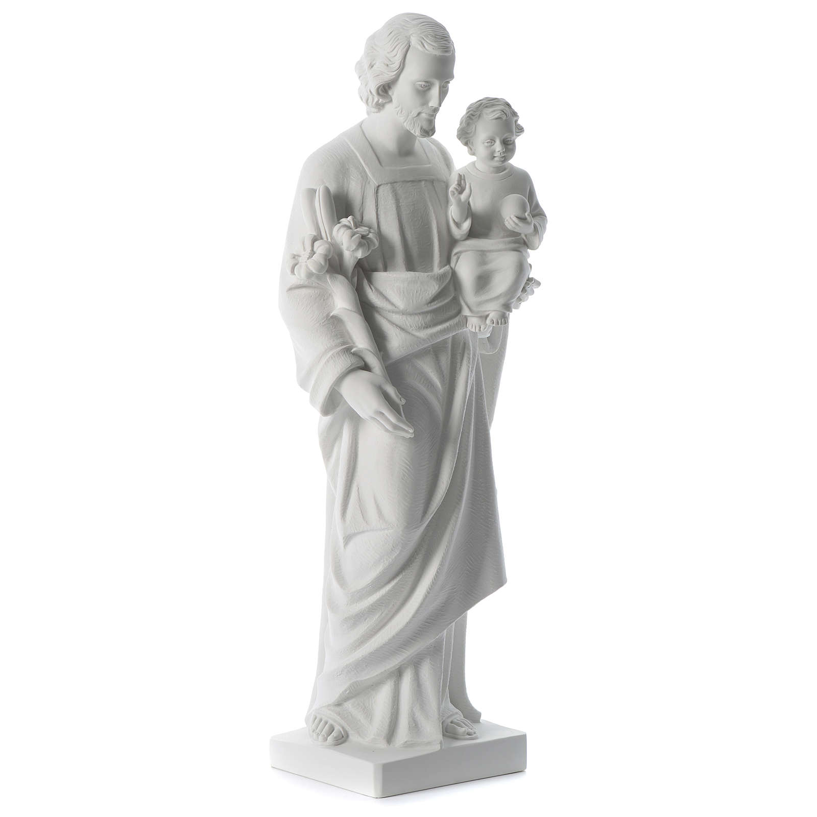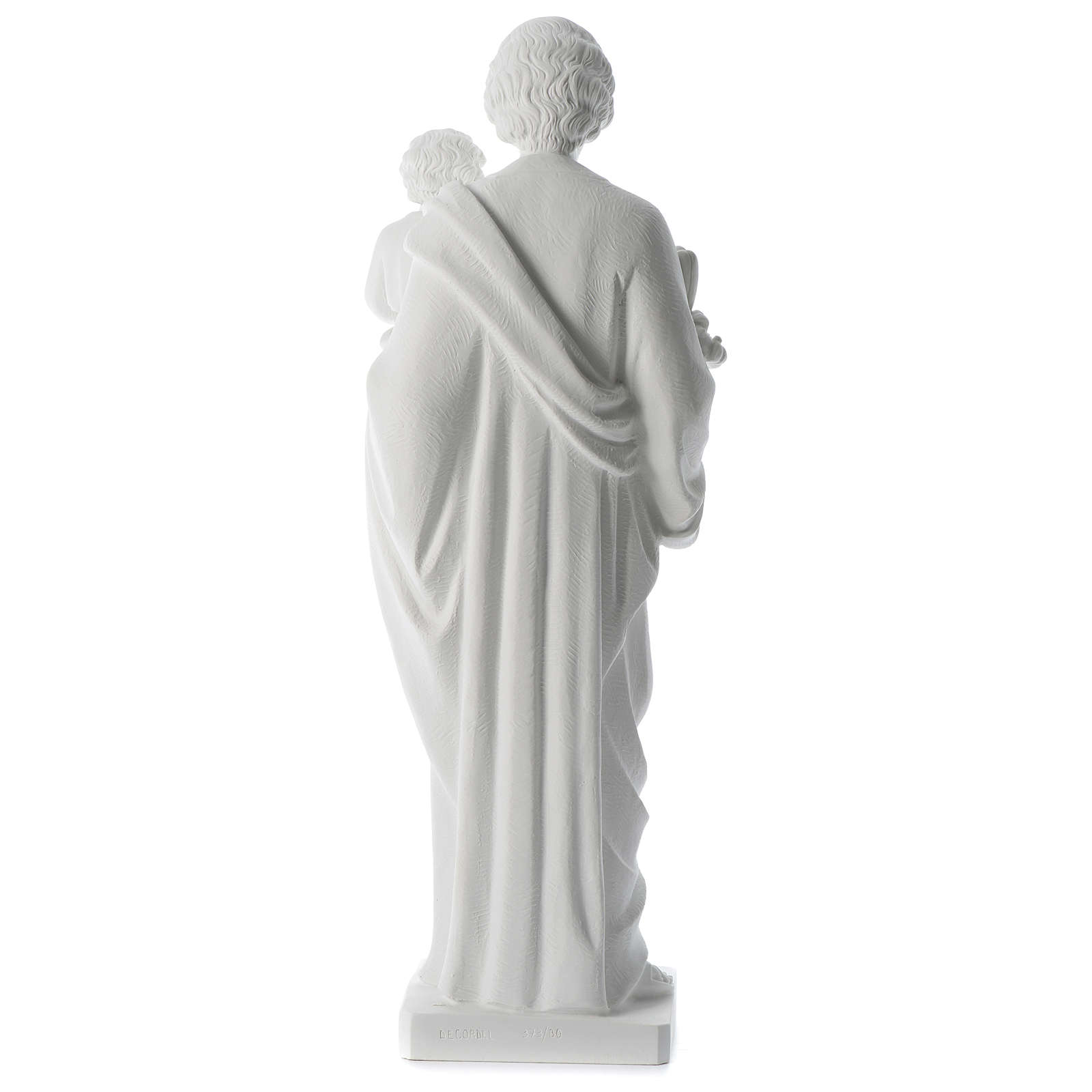 São José pó de mármore branco 80 cm. Imagem de São José composta por uma mistura de pó de mármore branco de Carrara e resina, de altíssima qualidade e muito resistente, adequada pela exposição no exterior.Moldagem e acabamento realizados à mão na Itália por uma empresa com décadas de experiência na realização de imagens e mobiliário litúrgico.Para a Proteção do Ambiente, informamos que os materiais utilizados na frabricação deste produto são fornecidos por empresas certificadas segundo as normas: UNI EN ISO 9001:2008 (Qualidade) e UNI EN ISO 14001:2004 (Ambiente).