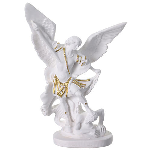 Estátua São Miguel resina branca e dourada 20 cm