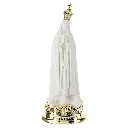 Nossa Senhora de Fátima em resina 20 cm com pombas e base dourada