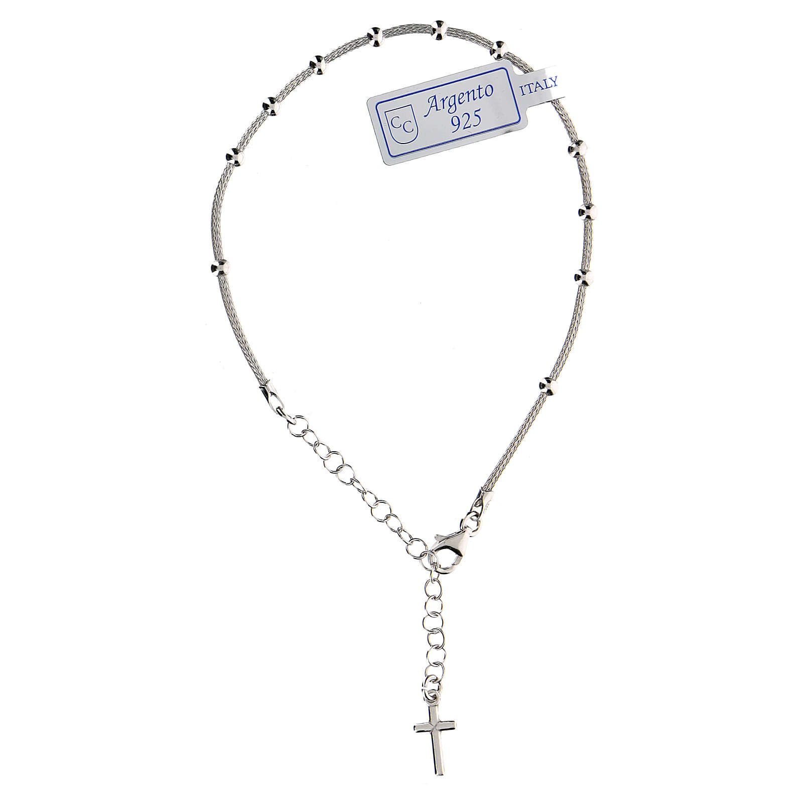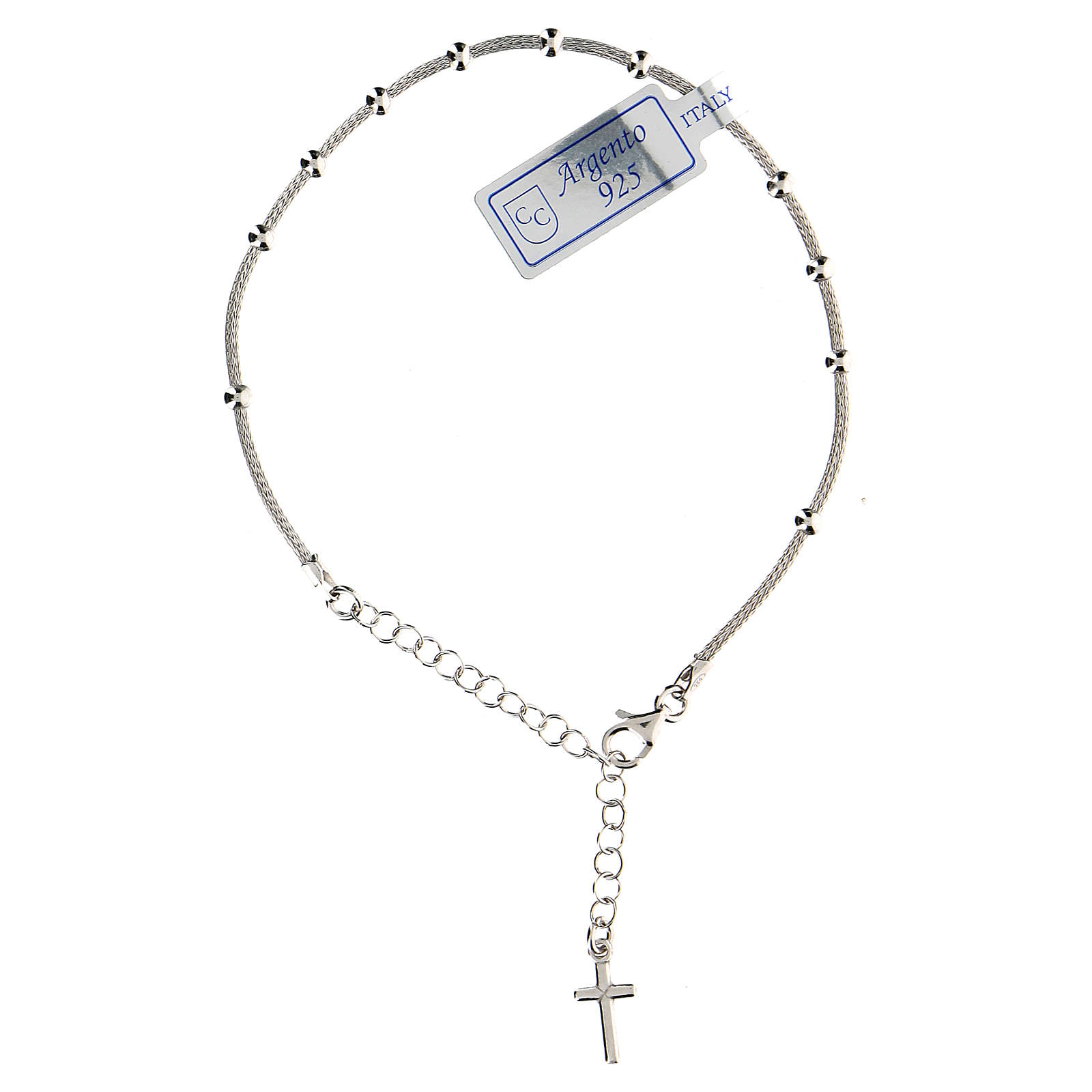 Pulseira dezena prata 925 cruz acab. rodiado. Pulseira dezena manufacturada em prata 925 com cruz final por artesãos italianos espacializados na criação de jóias.Pulseira de comprimento regulável de 32 cm até 42 cm.Peso: 3,3 gramas.