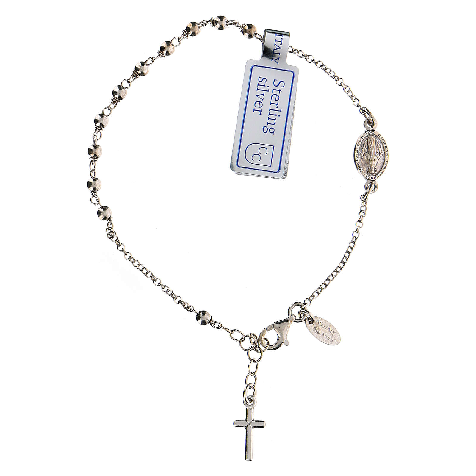 Pulseira dezena prata 925 cruz e Medalha Milagrosa acab. rodiado