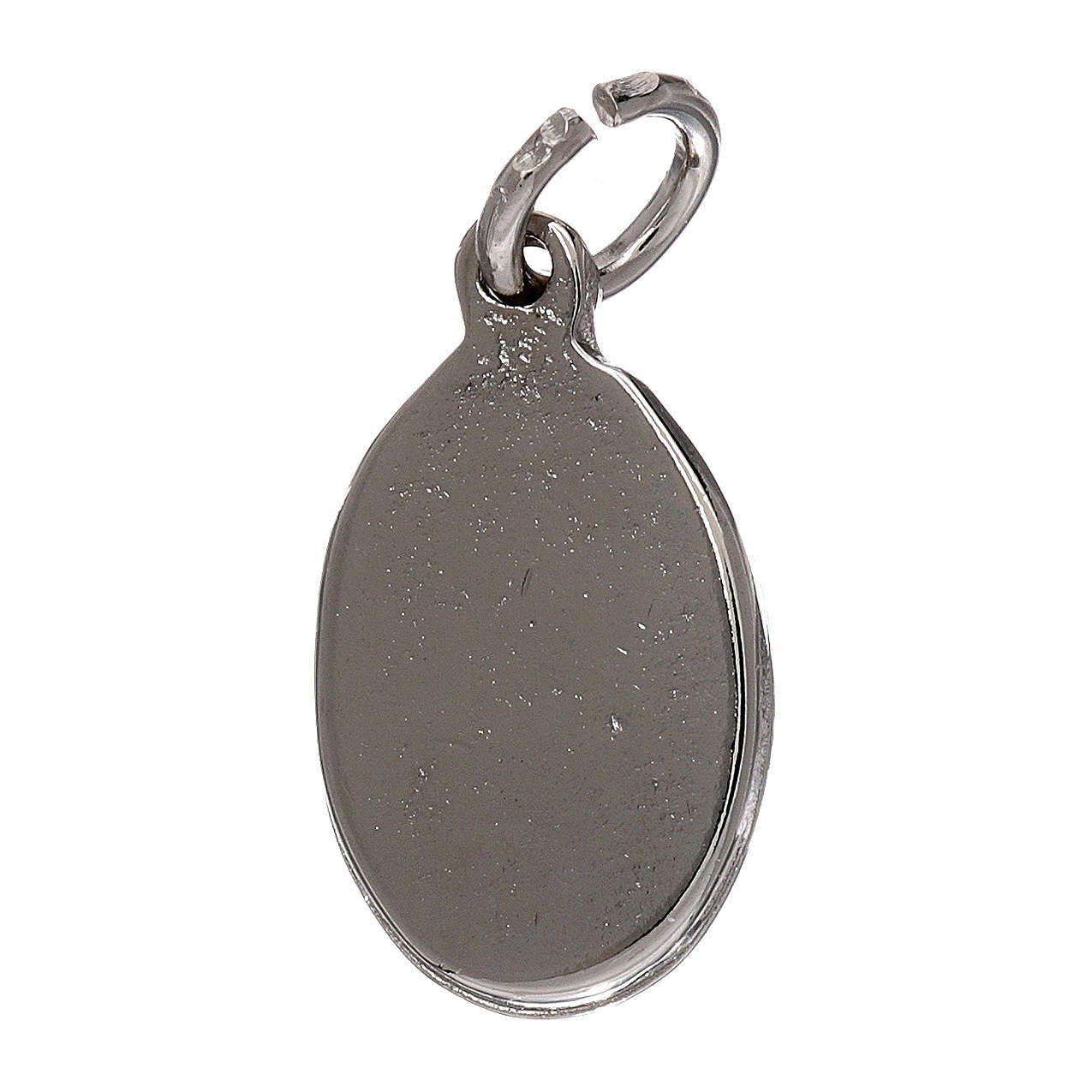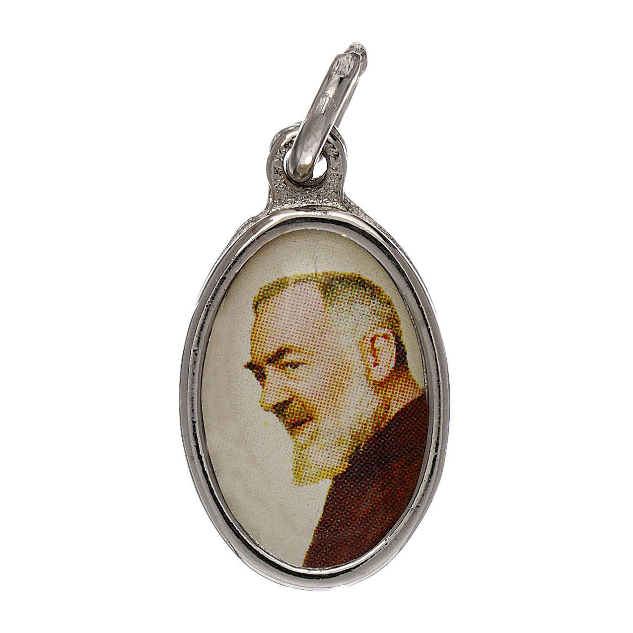 Medalha Padre Pio metal prateado resina 1,5x1 cm