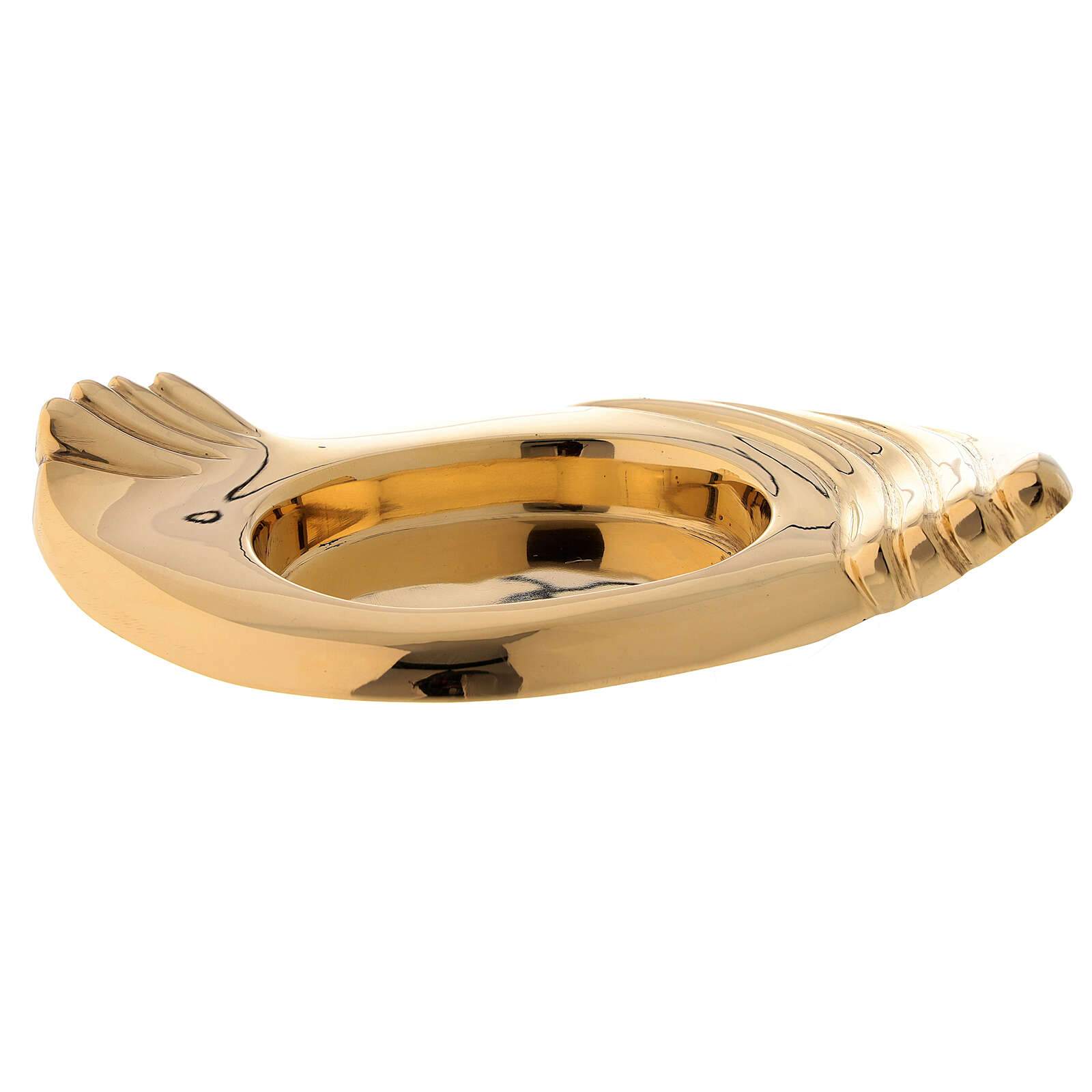 Prato porta-vela asas latãos dourado brilhante vela diâm. 5 cm. Prato em latão dourado brilhante em forma de asas com espaço oval no centro para velas de 6,5 cm de comprimento e 4,5 cm de largura.