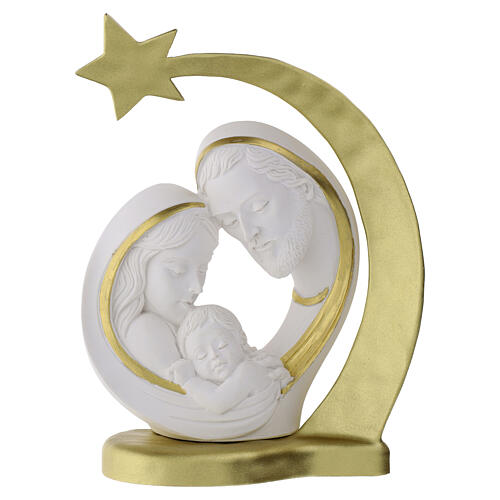 Estátua Sagrada Família com estrela em ouro 13x10 cm resina Valenti