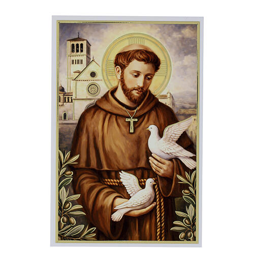 Quadro 15x10 cm Valenti São Francisco de Assis com pombas.