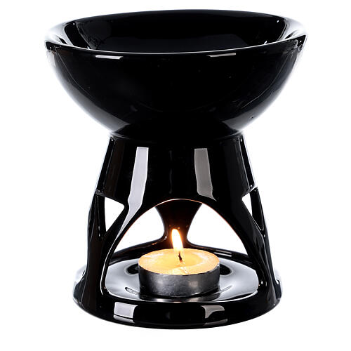 Difusor de essências cerâmica esmalte preto 12x12 cm. Pequeno difusor de essências, barato mas funcional, de estilo moderno, com base para vela e parte superior para essências.