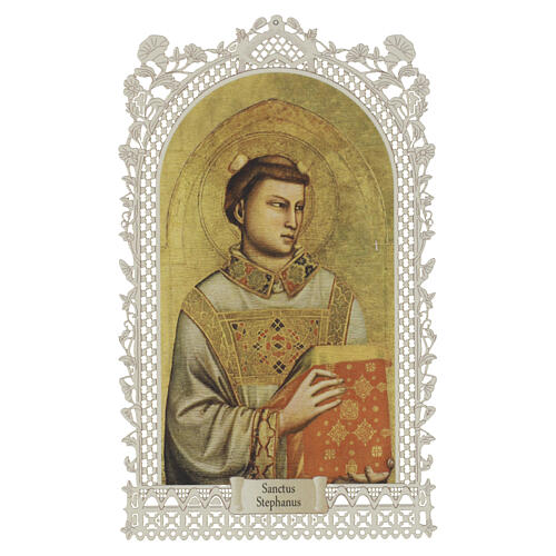 Santinho São Estevão com Livro dos Evangelhos 12x7 cm decoração rendilhada