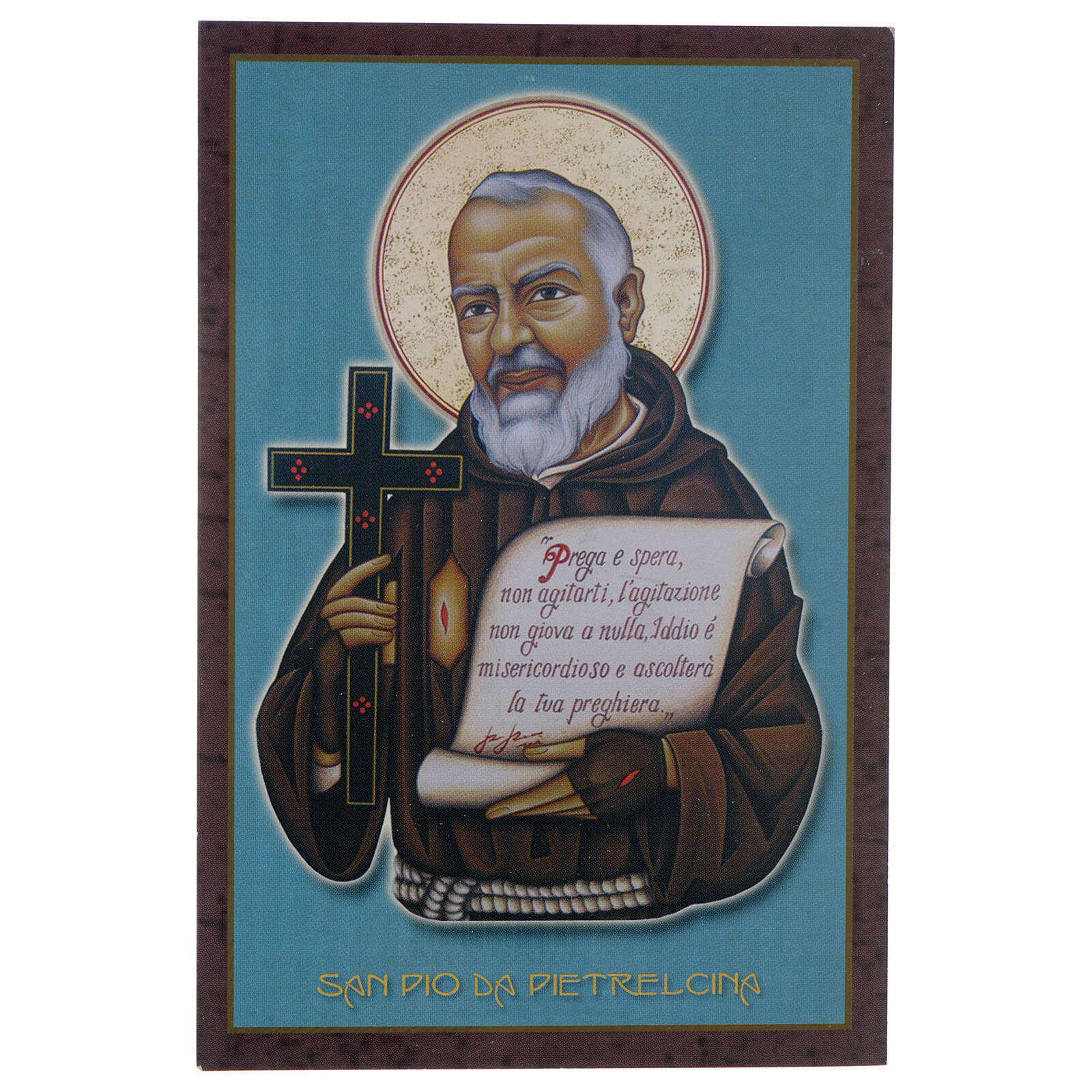 Santinho de São Padre Pio de Pietrelcina realizado em papel com impressão de alta definição por uma empresa especializada italiana.
