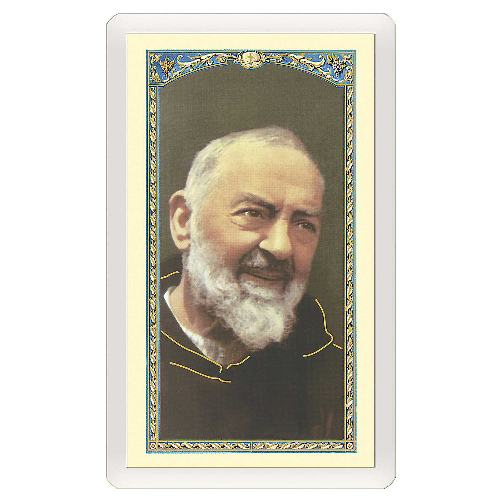 Santinho São Padre Pio de Pietrelcina com oração em ITALIANO 11,5x7 cm