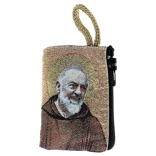 - Porta-terço tecido Nossa Senhora com Menino Jesus e São Pio de Pietrelcina 5x7 cm