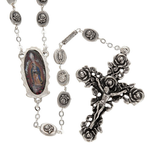Terço Ghirelli Nossa Senhora de Guadalupe prateada 6x8 mm