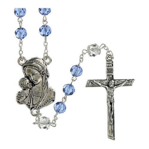 Terço contas cristal azul com Pai Nosso cristal corrente dupla 8 mm. Terço com contas de cristal azul e contas do Pai Nosso transparentes enriquecidas por dupla tulipa de 8 mm.