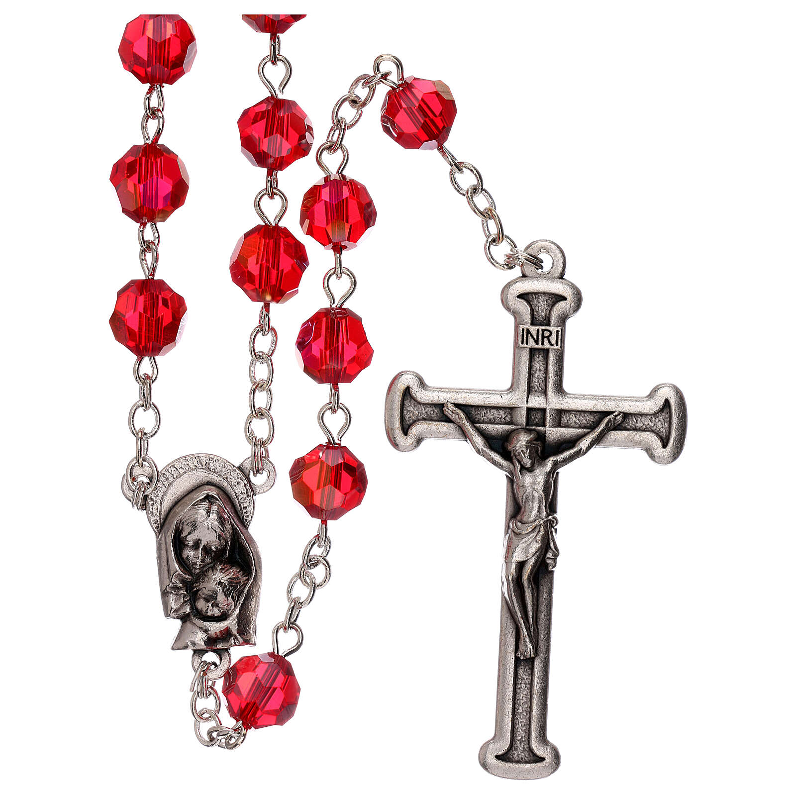 Terço cristal veremelho contas 5 mm Nossa Senhora da Misericórdia