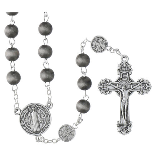 Terço São Bento contas 8 mm cor cinza.