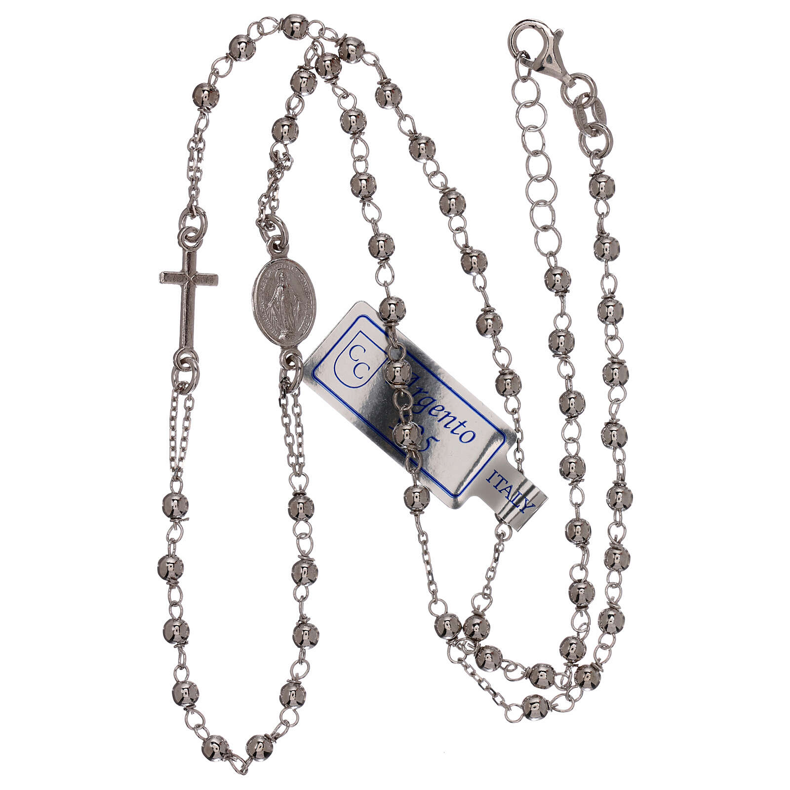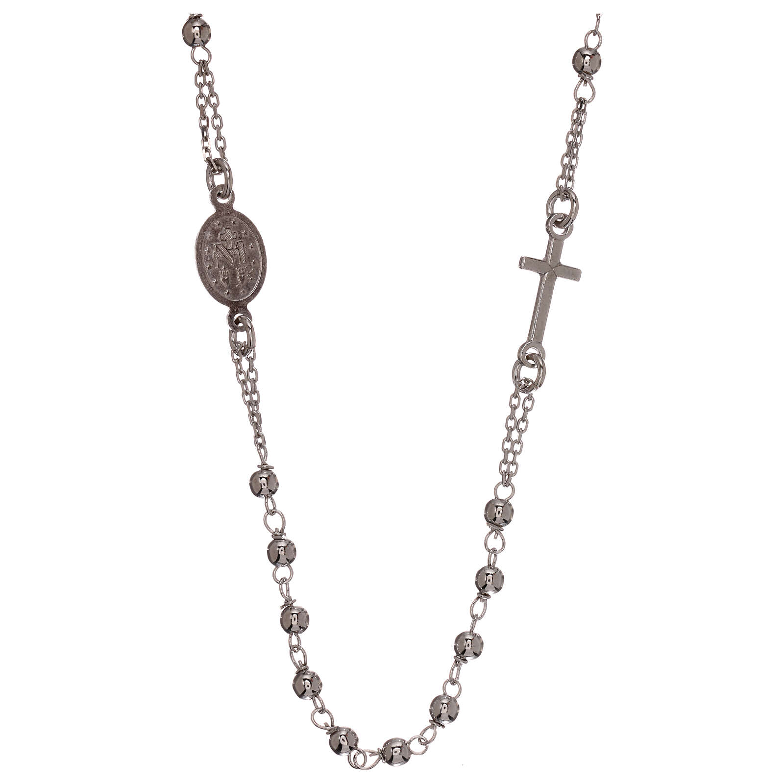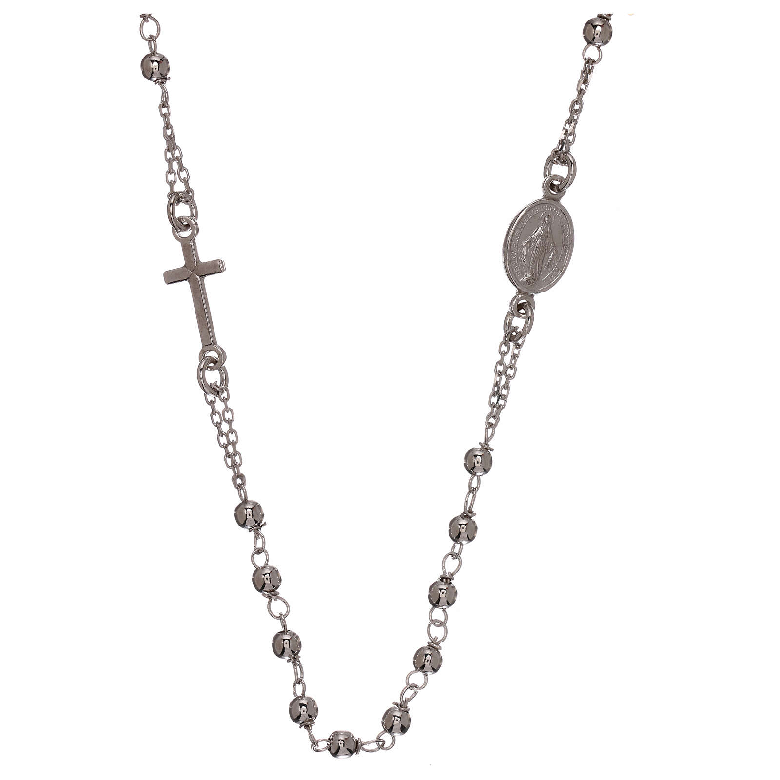 Colar terço prata 925 contas 1 mm