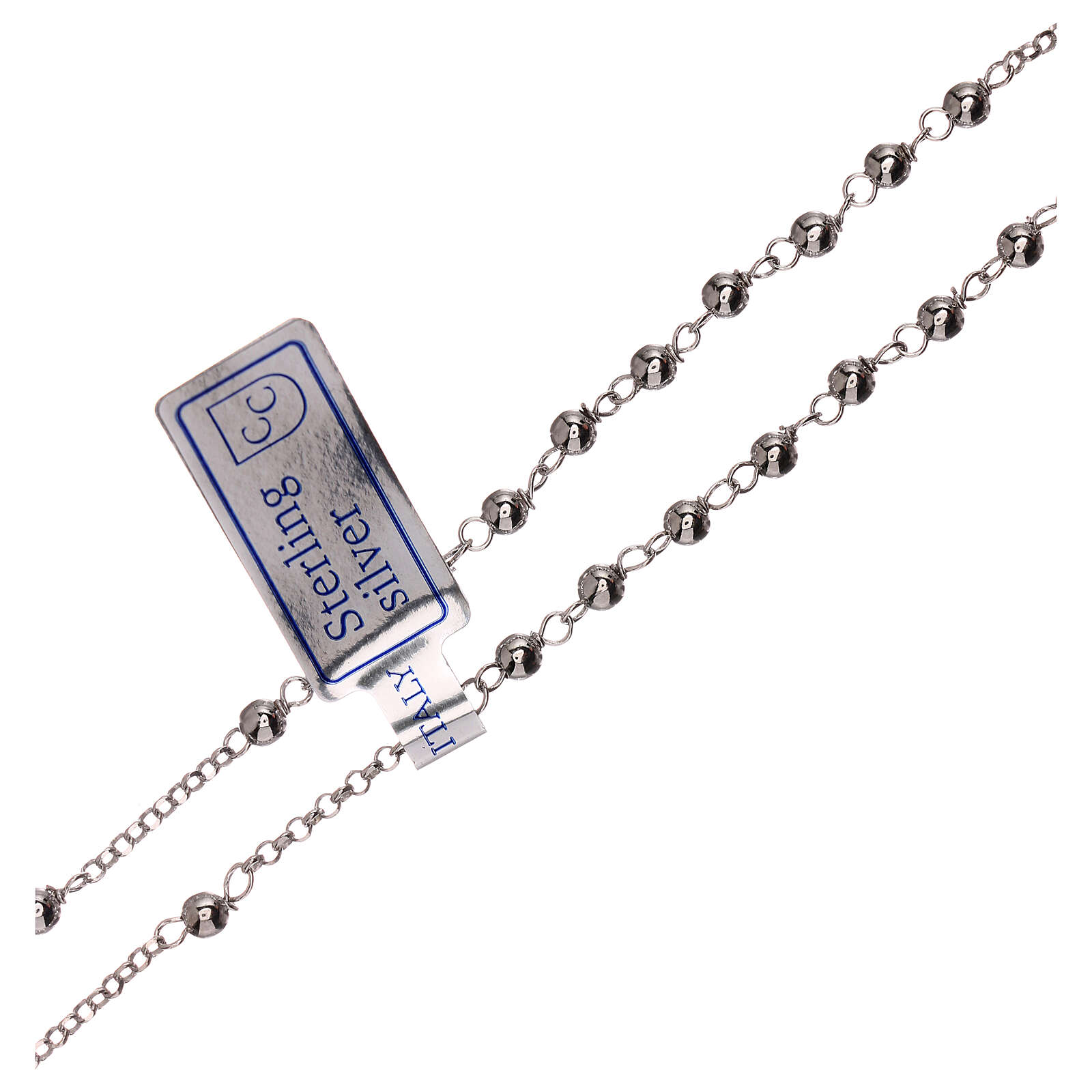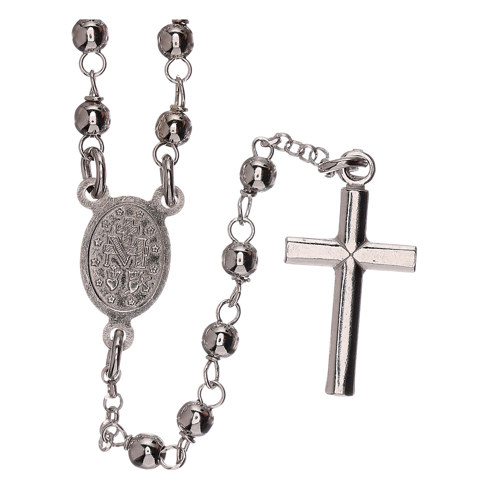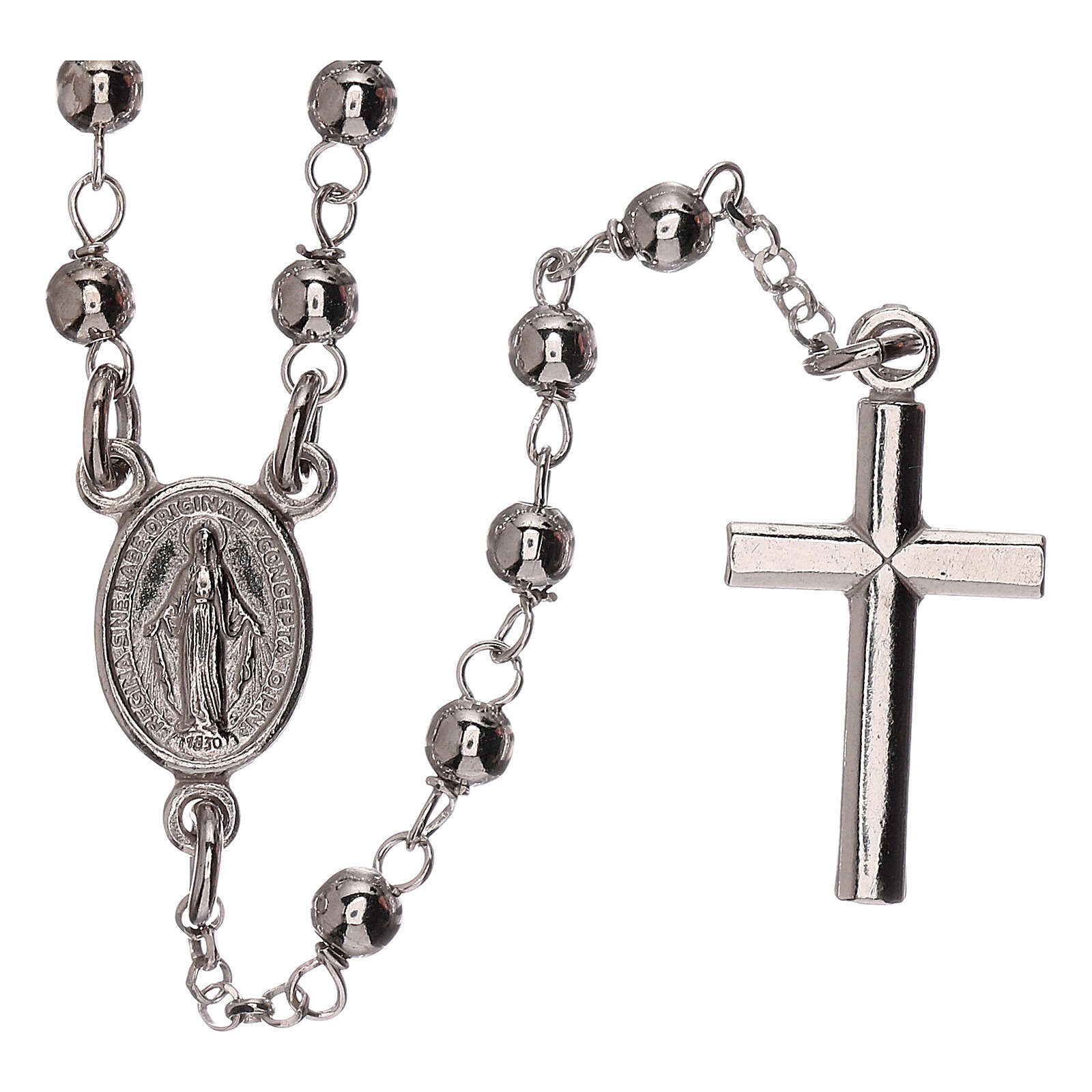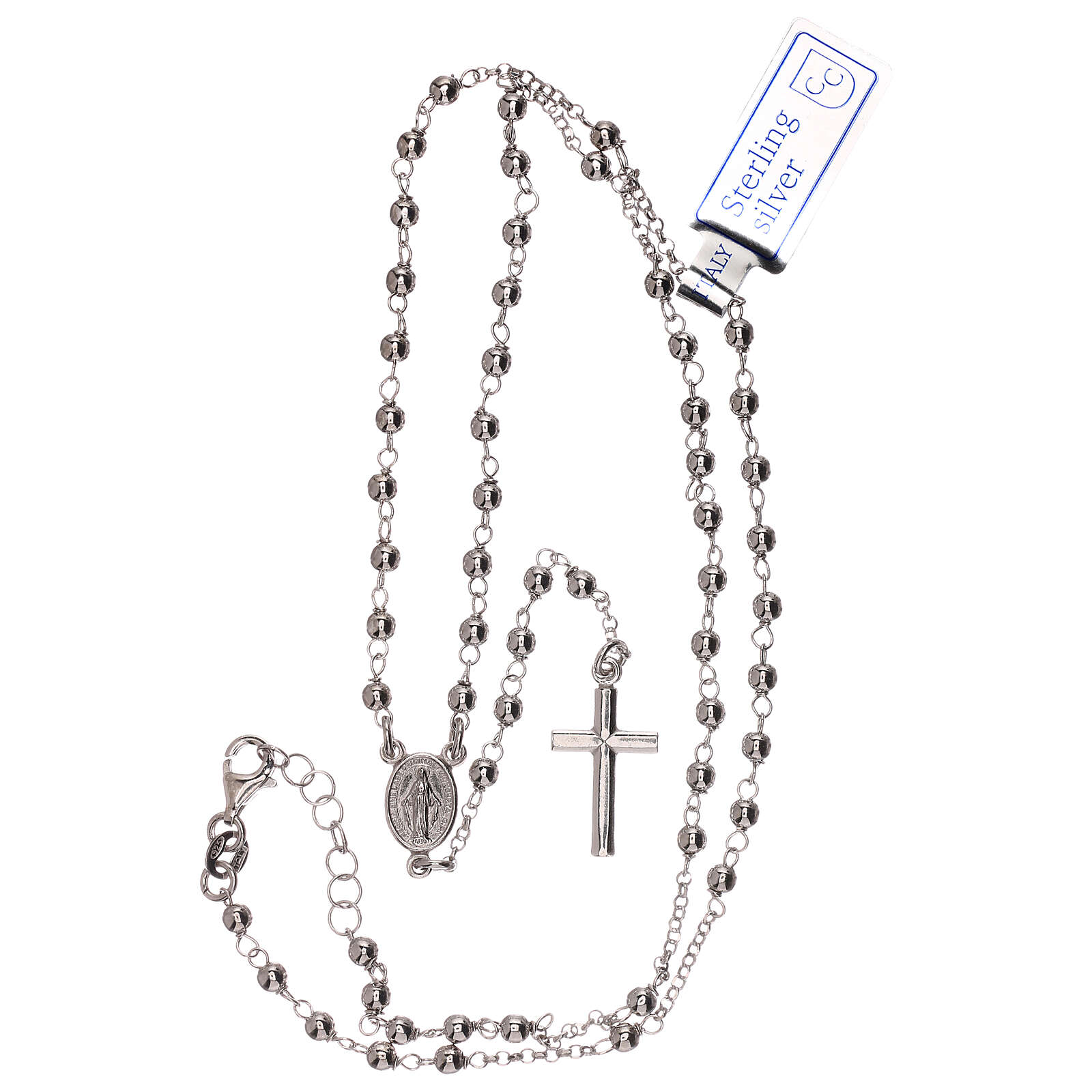 Colar terço prata 925 Nossa Senhora Milagrosa e cruz contas 1 mm