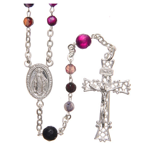 Terço ágata brasileira lapidada prata 925 4 mm roxo