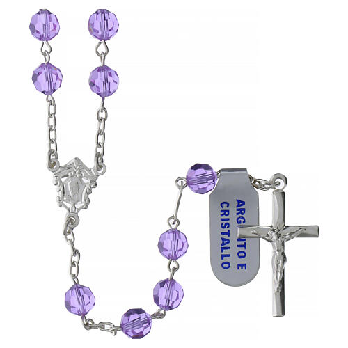 Terço cor-de-rosa contas de cristal facetado 6 mm prata 925.