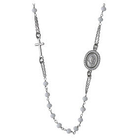 Terço prata 925 contas vidro multifacetado 8x10 mm branco com rosas