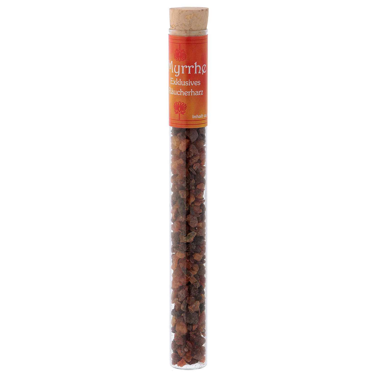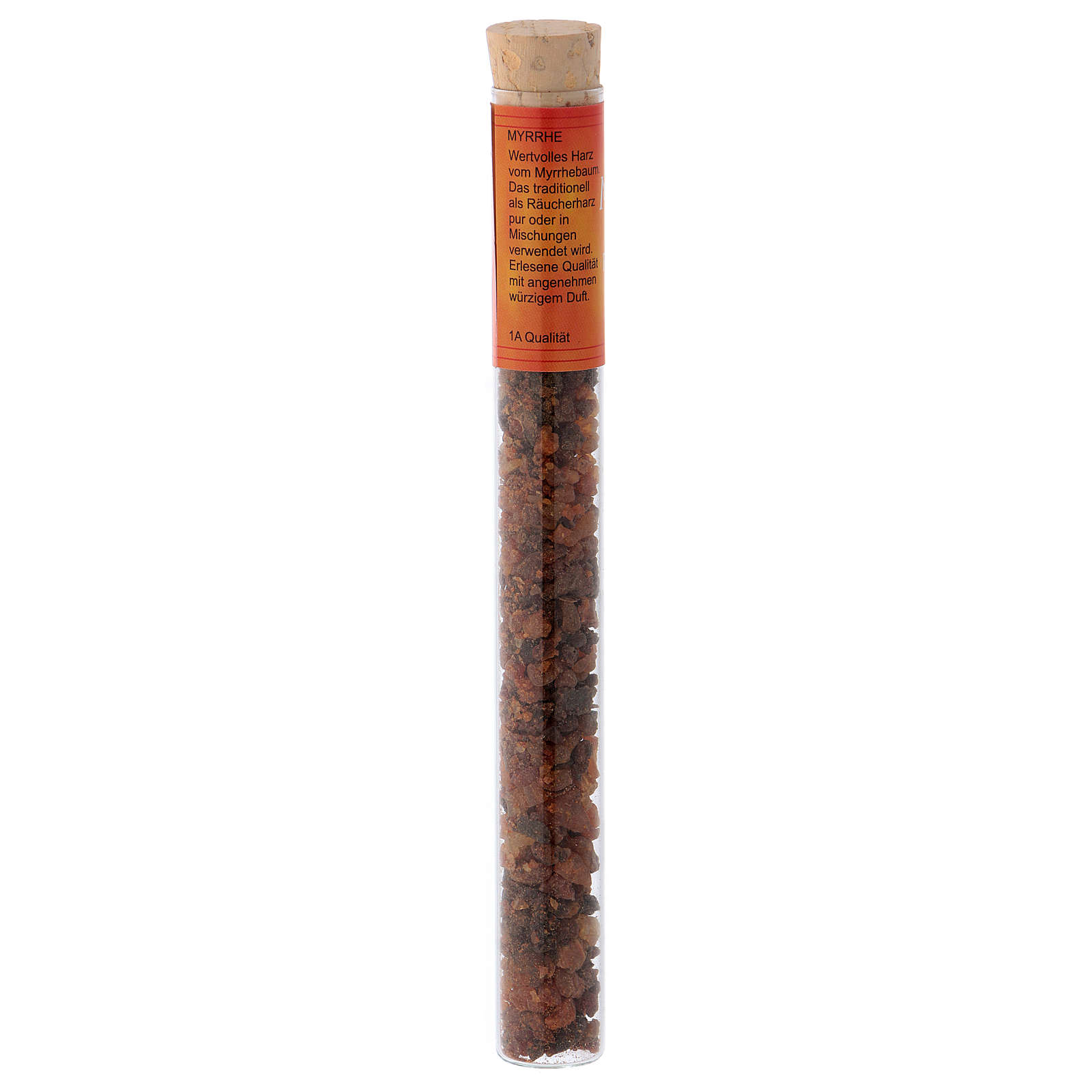 Incenso perfumado de Mirra em tubo 25 g. Incenso em tubo de vidro com tampa de cortiça.