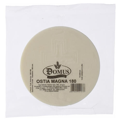 Hóstia magna para concelebração eucarística, em pão ázimo de trigo (farinha tipo 00), destinada às celebrações litúrgicas.