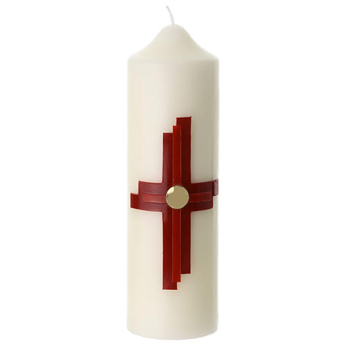 Círio de mesa cruz dois tons vermelhos 16x5 cm.