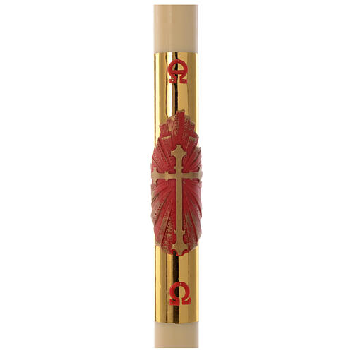 Círio pascal cera abelha Cruz vermelha fundo ouro 8x120 cm