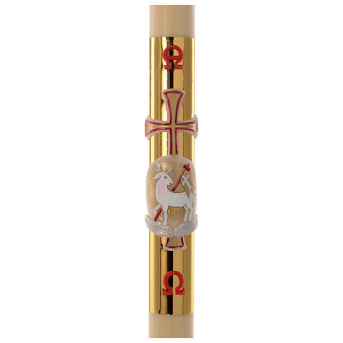 Círio Pascal COM REFORÇO Cordeiro Cruz Fundo Dourado com Cera de Abelha 8x120 cm