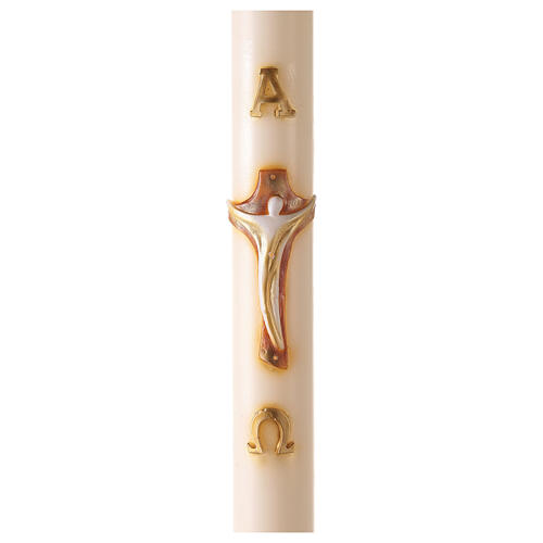 Círio Pascal cor marfim Cruz moderna e letras Alfa e Ómega, 120x8 cm
