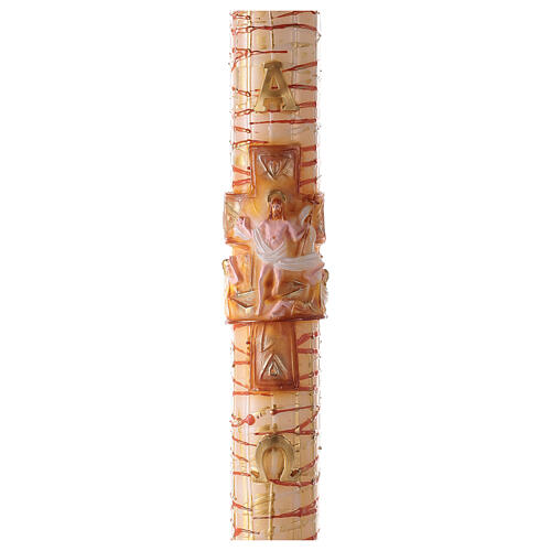 Círio Pascal listrado Cruz com Jesus Ressuscitado e letras Alfa e Ómega, 120x8 cm