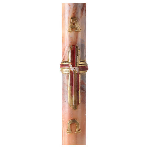 Círio Pascal marmoreado cruz estilizada e letras Alfa e Ómega, 120x8 cm.