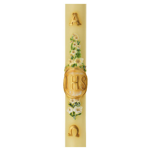 Círio pascal relevo IHS floral e pombas 8x120 cm.