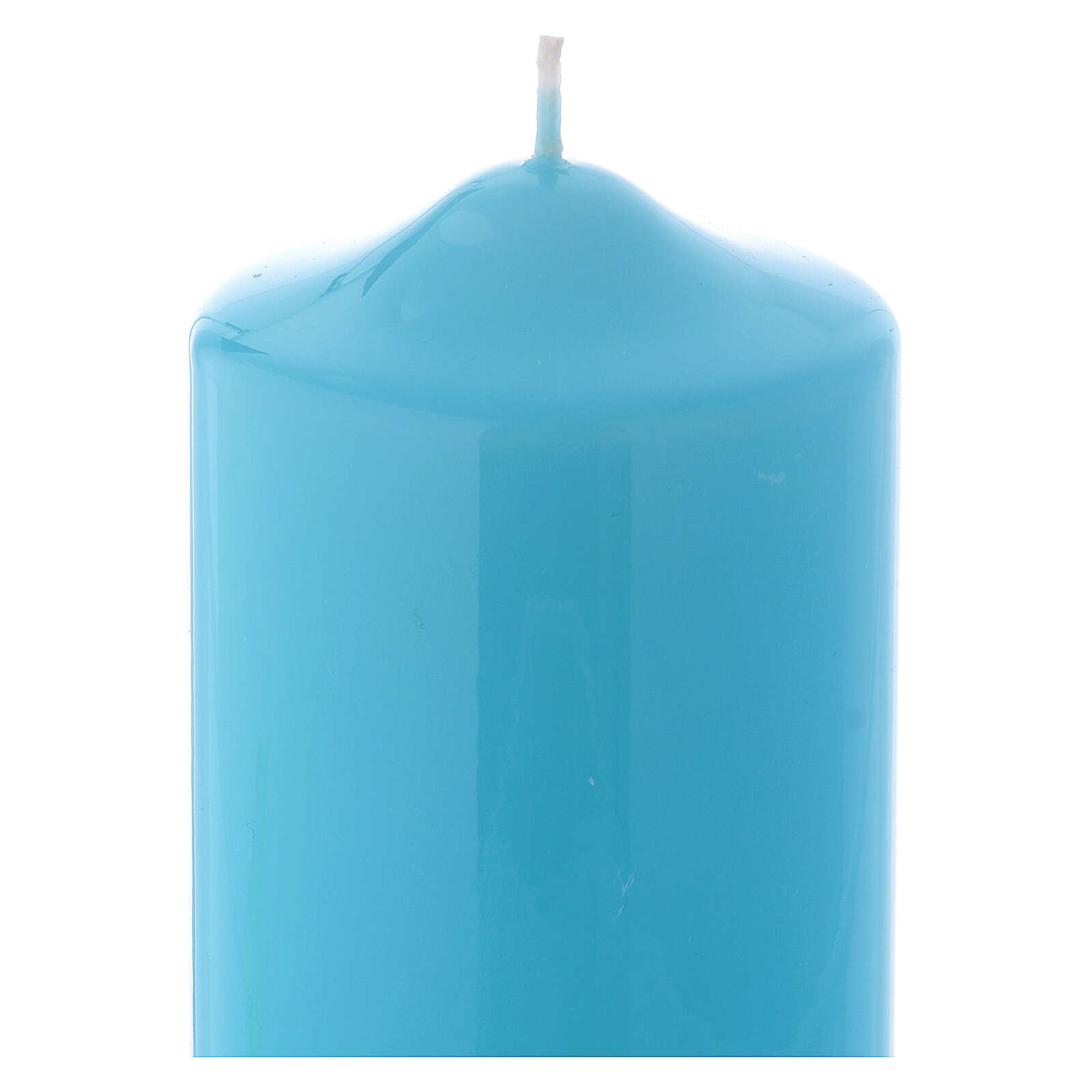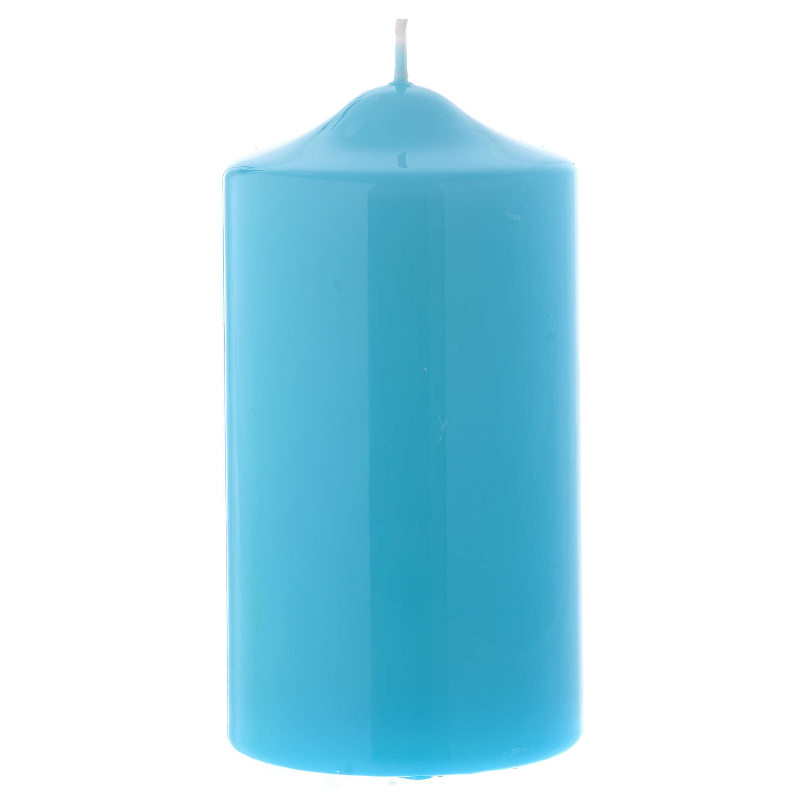 Vela brilhante Ceralacca 15x8 cm azul. Vela litúrgica de 8 cm de diâmetro da coleção Ceralacca com acabamento brilhante azul claro.