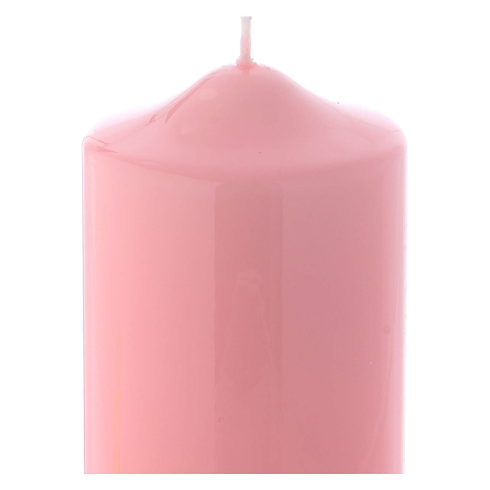 Vela brilhante Ceralacca 15x8 cm cor-de-rosa. Vela litúrgica de 8 cm de diâmetro da coleção Ceralacca com acabamento brilhante. Adequada por decorações do Advento.