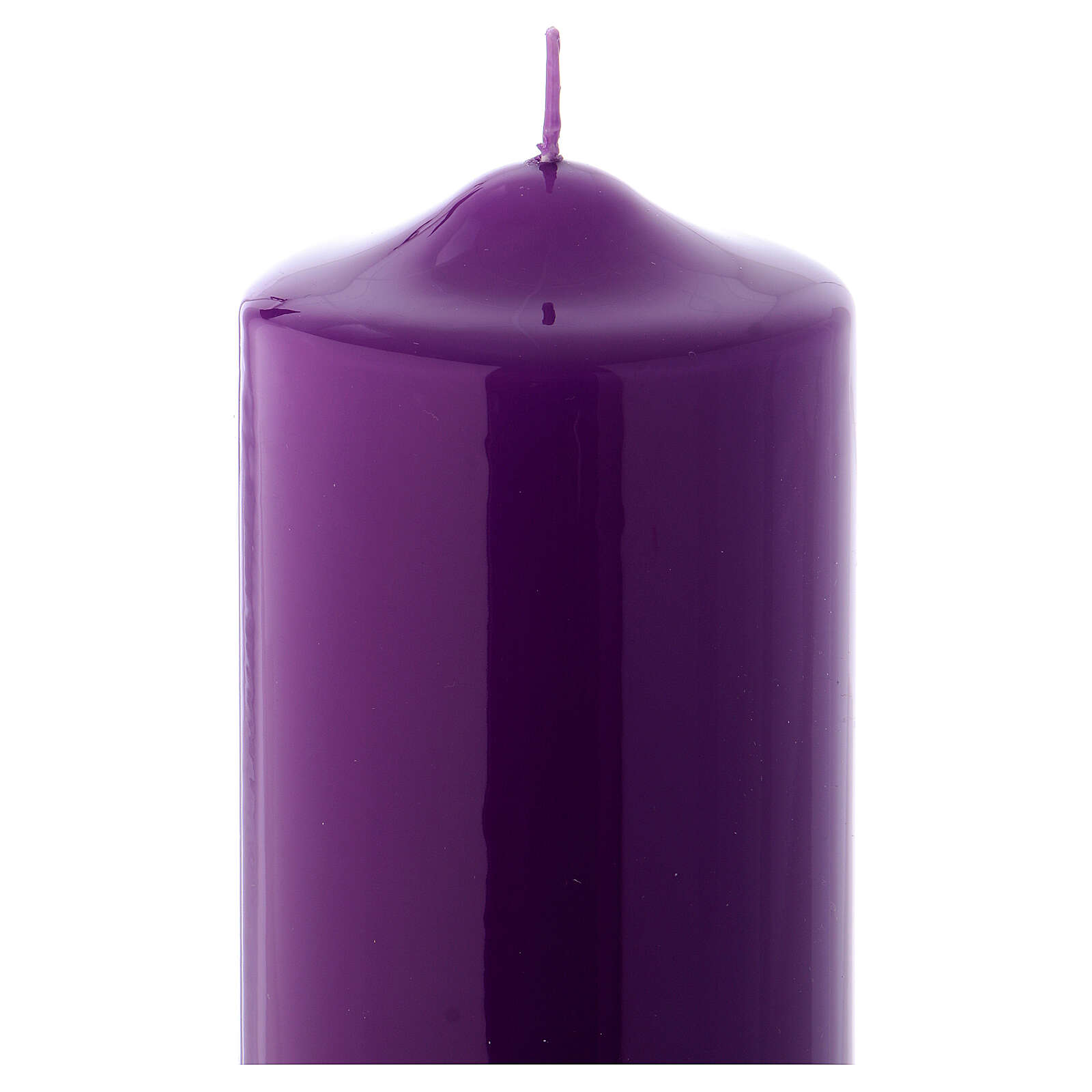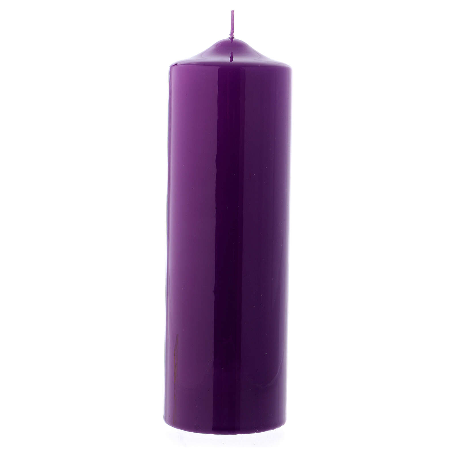 Vela litúrgica Ceralacca brilhante roxa 24x8 cm. Vela de altar de 8 cm de diâmetro e 24 cm de altura, caracterizada por um acabamento brilhante roxo, da coleção Ceralacca. Adequada por decorações do Advento.