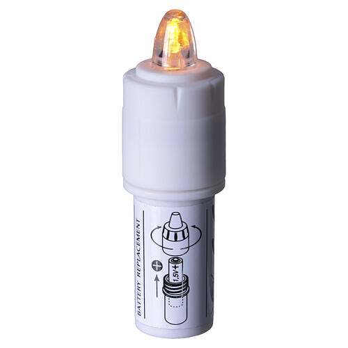 Micro-veilleuse universelle à lumière jaune clignotante intense et dôme transparent d'une durée d'environ 180 jours avec une pile. Le logement de la pile se dévisse pour un remplacement facile. Alimentée par une pile AA 1,5 V (pile non incluse).