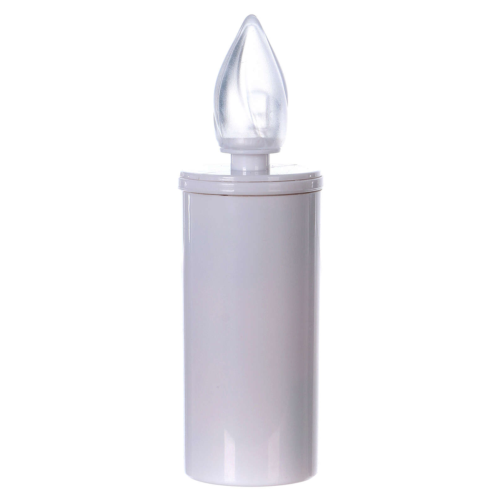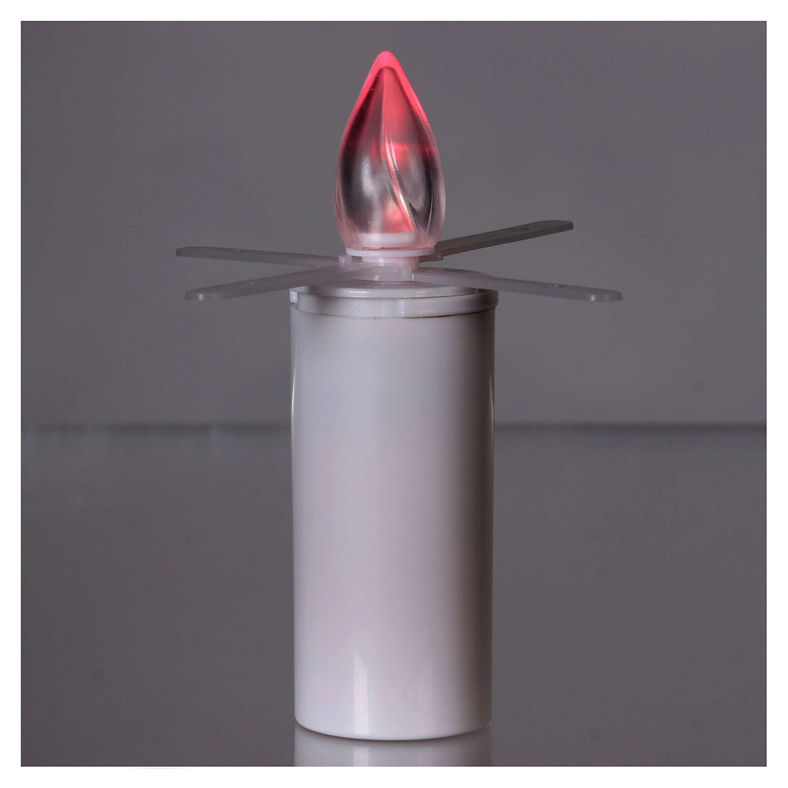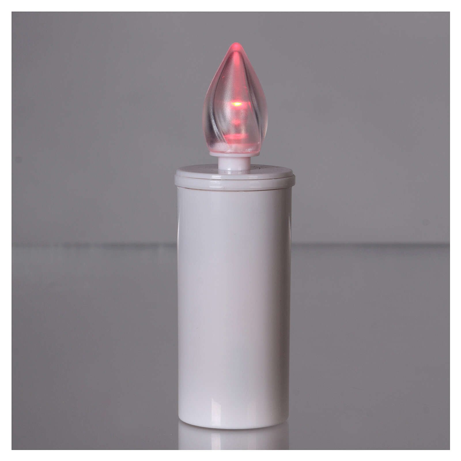 Vela Lumada anual descartável luz intermitente vermelha. Vela votiva branca com luz intermitente vermelha alimentada por uma pilha alcalina 1,5V (incluída) descartável, com uma duração de um ano.Modelo com pás para posicionamento no copo.