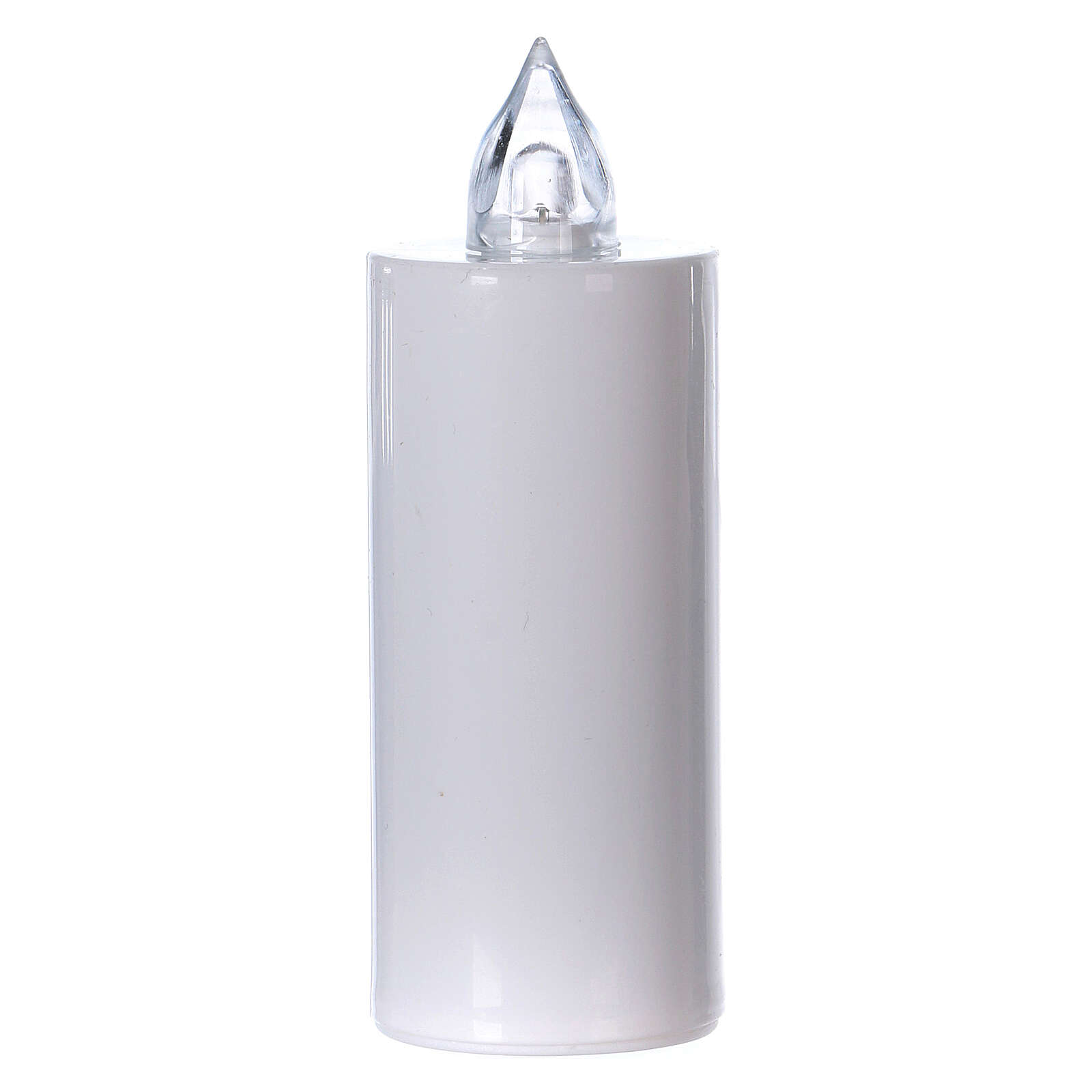 Vela votiva Lumada branca luz intermitente amarela. Vela votiva branca com luz amarela intermitente e uma duração de 100 dias. Pilhas AA não incluídas.