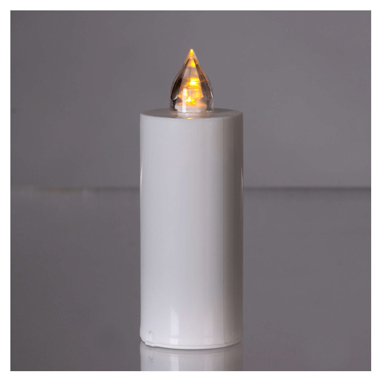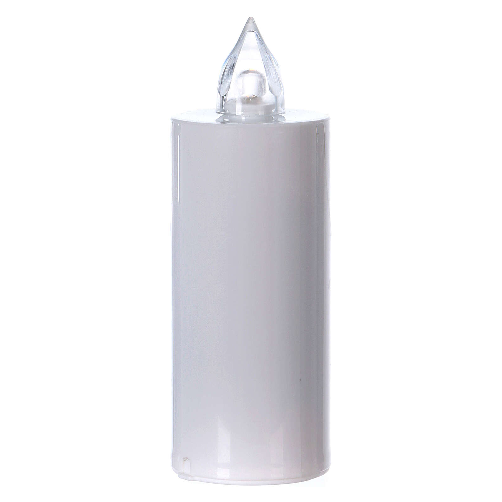 Vela votiva Lumada descartável luz amarela chama real. Vela votiva descartável de cor branco com luz amarela efeito chama real, com uma duração de 100 dias.Pilhas AA incluídas.
