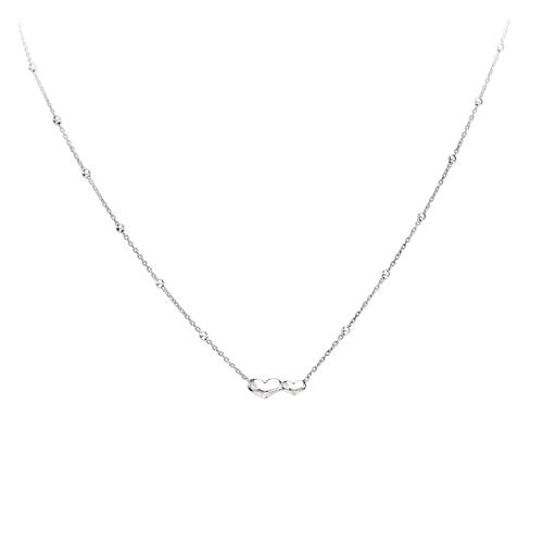 Colar AMEN coração duplo prata 925 rodinada. Colar fino de prata 925 rodinada enriquecido por contas de pequenas dimensões e por dois corações no centro, unidos, de tamanhos diferentes.