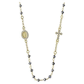 Terço contas hematita 4 mm Medalha Milagrosa prata 925 dourada Benedictus