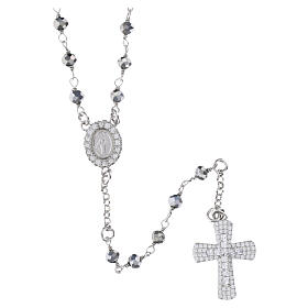 Terço cristal 4 mm preto hematita bolas de strass prata 925