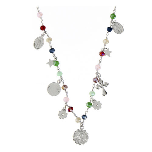 Colar Amore Agios prata 925 contas multicores e berloques. Colar realizado na Itália por artesões experientes em prata 925 rodinada com contas de pedras multicores e berloques vários.