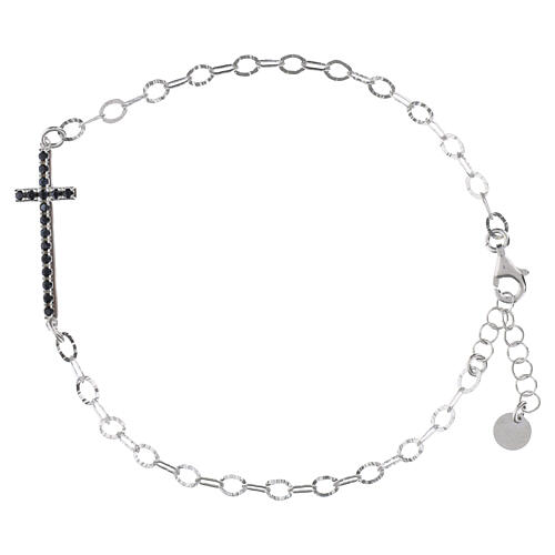 Pulseira cruz com zircões pretos corrente plana Benedictus prata 925.