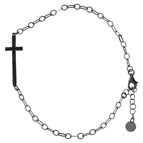 Pulseira em prata 925 com acabamento em rutênio cinza‑escuro brilhante, com cruz central decorada por zircões pretos.