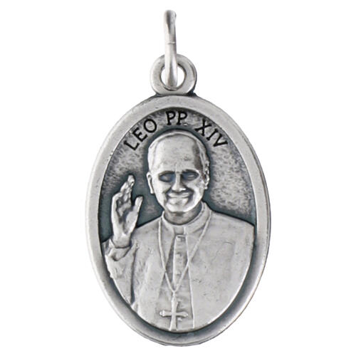 Medalha zamak prateada Papa Leão XIII e São Pedro 25 mm.