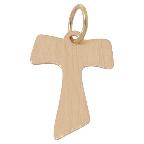 Pingente Tau ouro amarelo efeito madeira 18K 0,7 gr. Pingente em ouro amarelo 18K com verso brilhante e frente acetinada efeito madeira.Jóia manufacturada na Itália, entregada com certificado de garantia.