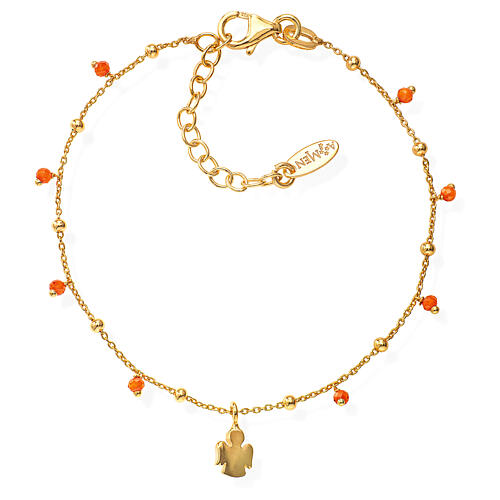 Pulseira Amen prata 925 dourada anjo e contas cor laranja. Pulseira Amen de prata 925 dourada com circunferência ajustável (14-18 cm) e fecho mosquetão, enriquecida por contas de cristal cor laranja de 1 mm tipo berloques e um anjo pingente no centro.